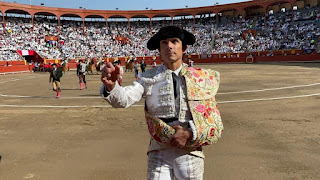 Firme muy quieto y capaz con un toro que fue por arreones, reservón sin regalar embestidas por abajo sino desiguales, mirando y probando. Hizo más de lo que el toro quería y resultó deslucido y poco agradecido. Extendió demasiado la faena y se le complica la espada que entra cuando estaba apencado en tablas y la dejo más de media suficiente. Firmeza y capacidad. Palmas.