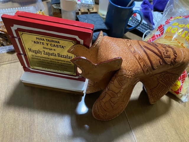 Gracias ARTE Y CASTA y Felix de Sicaya que me regaló ese torito PASIÓN en cuero repujado en ARTE con corazón.